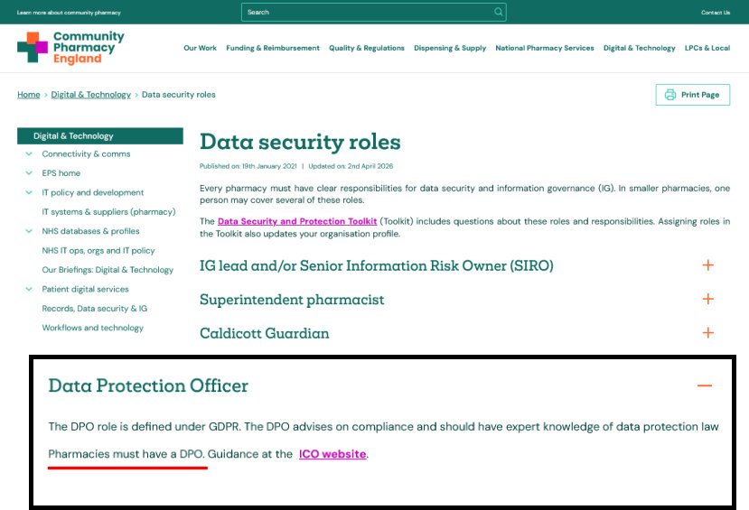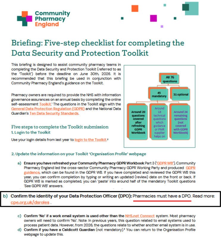 Community Pharmacy England now directs all UK pharmacies to appoint a Data Protection Officer BEFORE filling out the June 2026 Data Security and Protection Toolkit.